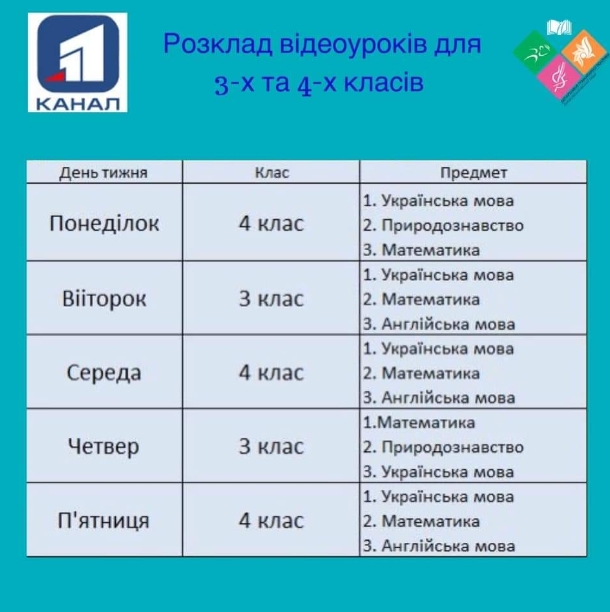У понеділок, 23 березня 2020р. розпочалась трансляція відеоуроків на 11 каналі для учнів 3-х та 4-х класів, повідомляє освітній портал Ерудит.нет. Уроки також будуть доступні онлайн на YouTube каналі: https://bit.ly/2QC9cfj