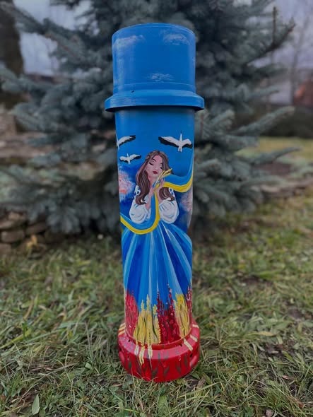 Діти з Берегометський Ліцей Чернівецької області Вижницького району створили арт-проєкт «Кольори свободи» — розмалювали тубус від гаубиці М777, вклавши туди те, чого в нас не може забрати ніхто: надію, любов і віру в Перемогу.