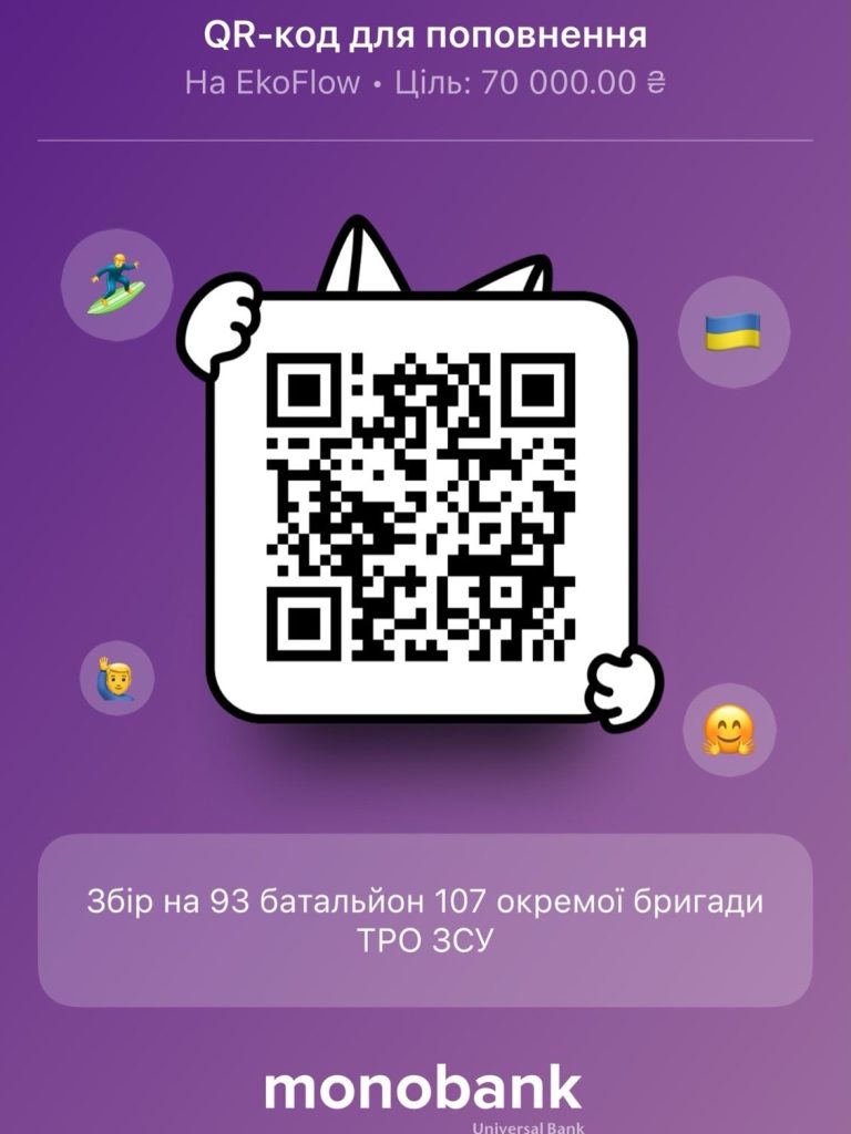 Відкриваємо збір для 93 батальйону 107 окремої бригади ТРО ЗСУ. Їм потрібна енергія — буквально. Збираємо кошти на EcoFlow та Starlink, у якому наші воїни мають нагальну потребу, щоб зв’язок був безперебійний.