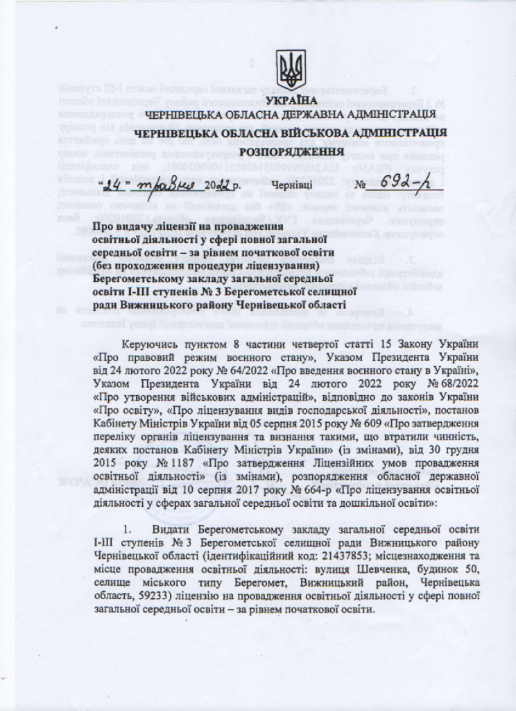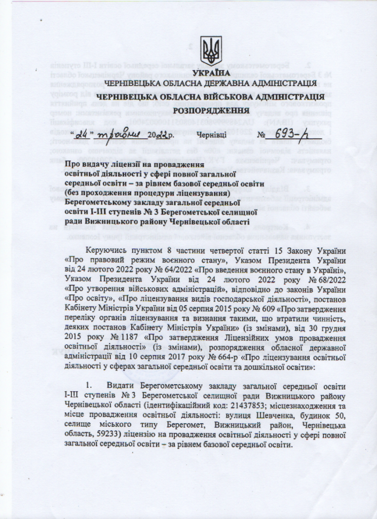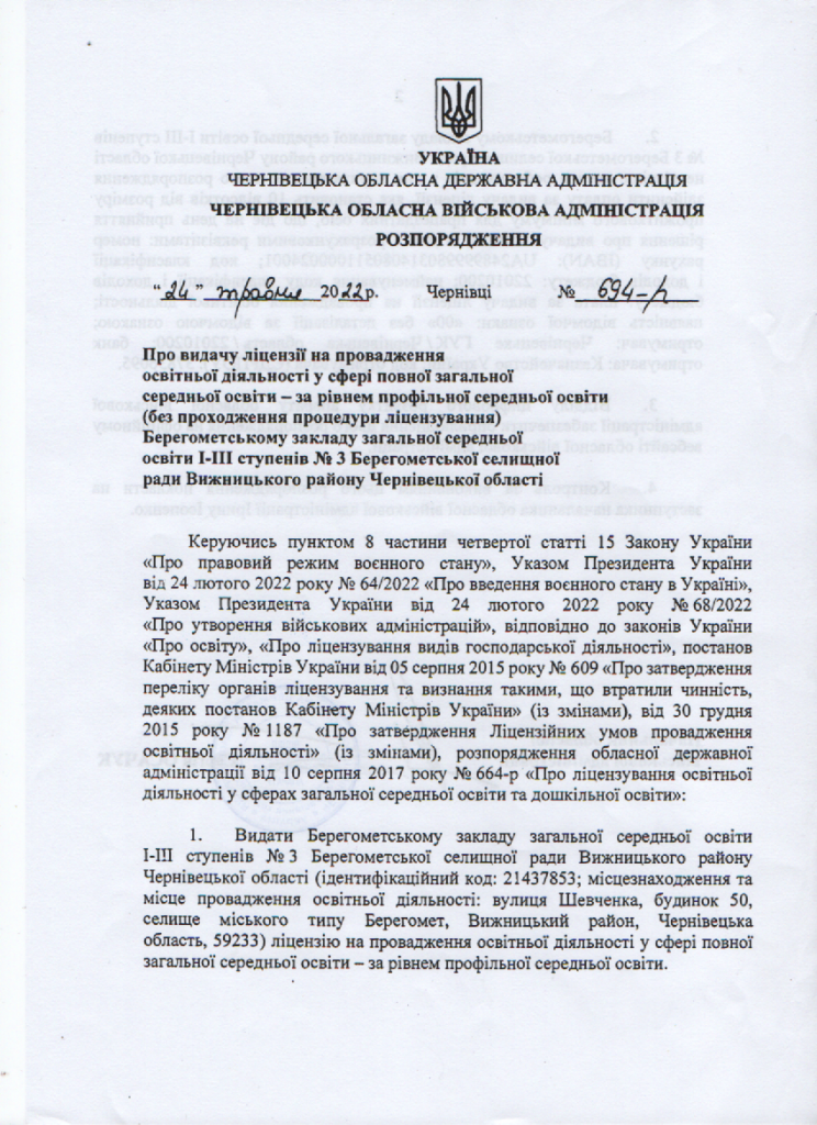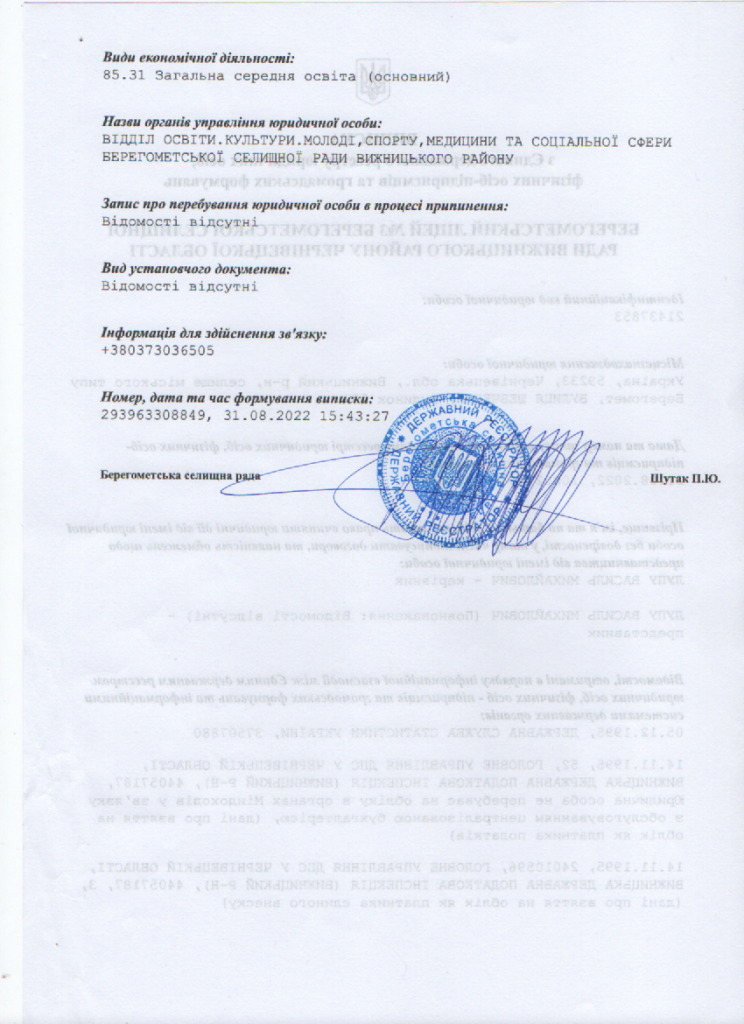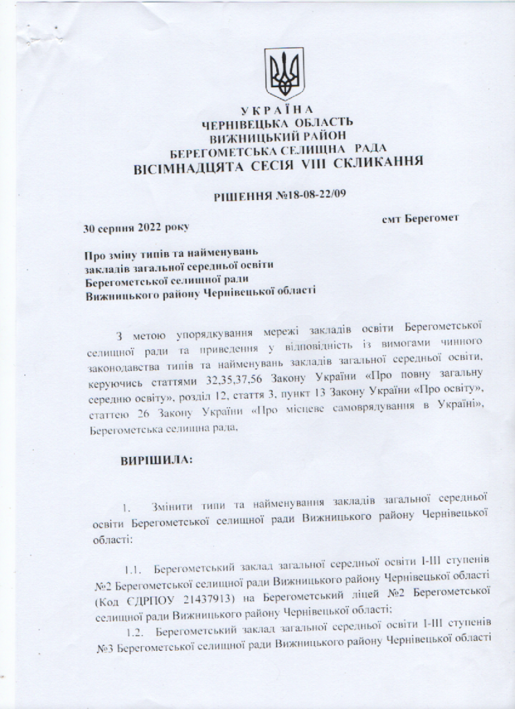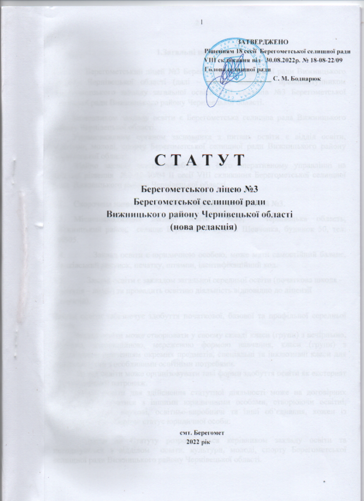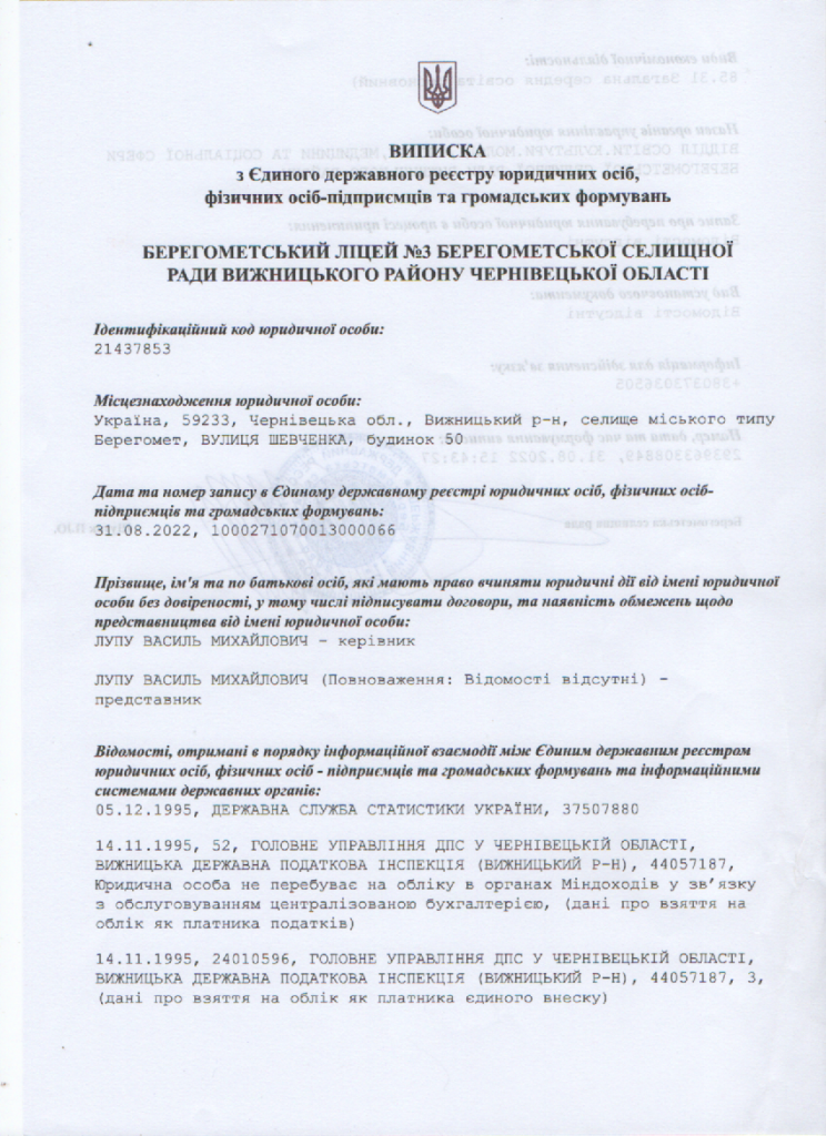 Берегометський ліцей №3 Берегометської селищної ради Вижницького району Чернівецької